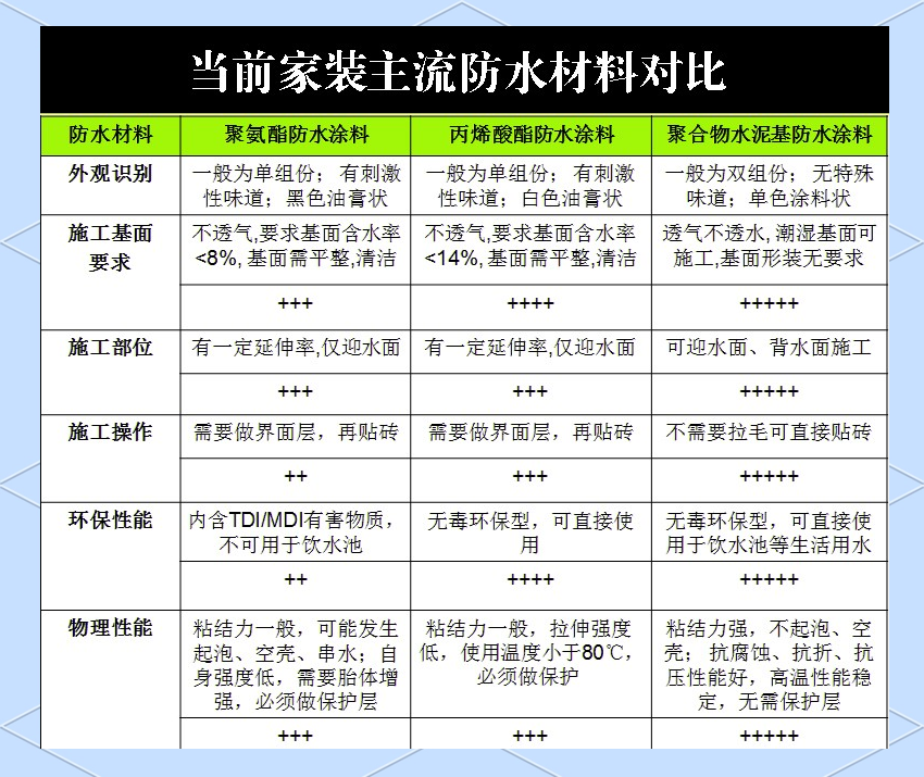 瑞士西卡柔韧型双组份防水涂料和其他材料对比: